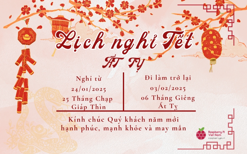 Thông báo lịch nghỉ Tết Nguyên đán Ất Tỵ 2025 Raspberry Pi Việt Nam xin chân thành cảm ơn sự tín nhiệm và ủng hộ của quý khách hàng trong suốt một năm qua. Để khách hàng chủ động trong thời gian mua sắm cuối năm, chúng tôi xin thông báo lịch nghỉ Tết Nguyên Đán…