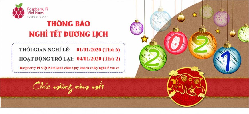 Kính gửi Quý khách! Raspberry Pi Việt Nam (Công ty Cổ phần Trung tâm Dữ liệu Internet Việt Nam) xin thông báo đến Quý Khách hàng, Đối tác và toàn thể cán bộ nhân viên kế hoạch nghỉ Tết Dương lịch 2021 như sau: Thời gian nghỉ: Thứ Sáu, ngày 01/01/2020 Thời gian làm việc…