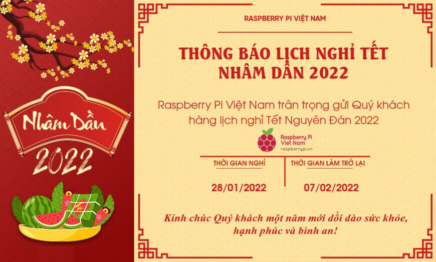 Kính gửi Quý khách hàng! Do tình hình dịch Covid-19 diễn biến phức tạp, chúng tôi có điều chỉnh lịch nghỉ Tết âm lịch để đảm bảo an toàn phòng chống dịch. Vì vậy Raspberry Pi Việt Nam (Công ty Cổ phần Trung tâm Dữ liệu Internet Việt Nam) xin thông báo đến Quý Khách…