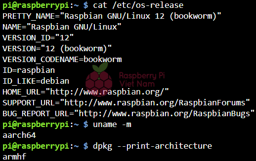 Trong một số trường hợp, Raspberry Pi có thể sử dụng kernel 64-bit trong khi vẫn chạy hệ điều hành 32-bit (userland), khiến nhiều người dùng nhầm tưởng rằng hệ điều hành của mình là 64-bit. Chính vì vậy, việc kiểm tra đầy đủ và chính xác cả phiên bản hệ điều hành, kiến trúc kernel và kiến trúc hệ thống gói là điều cần thiết – đặc biệt khi bạn muốn tối ưu hiệu suất, cài đặt phần mềm nâng cao, hoặc phát triển ứng dụng chuyên sâu.