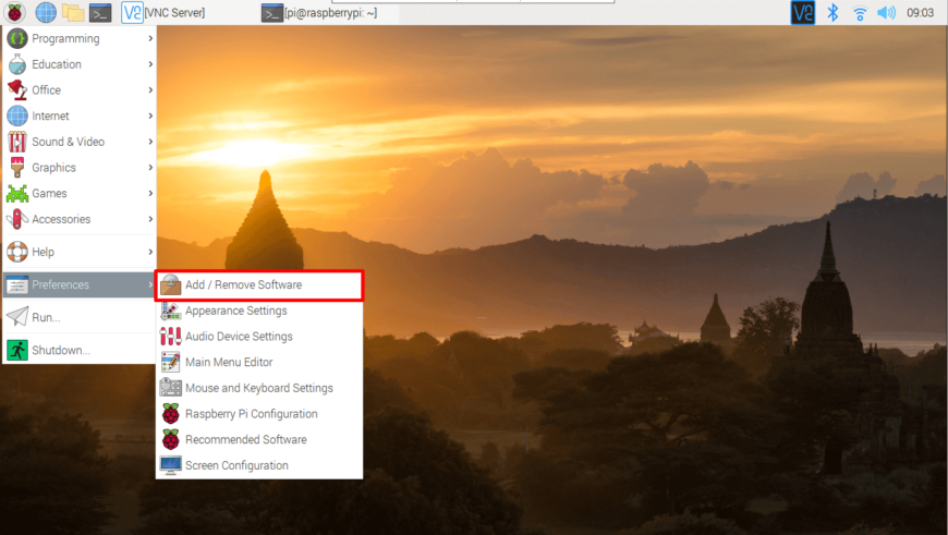 Đầu tiên, bạn truy cập Start Menu, chọn Preferences rồi chọn Add/Remove Software