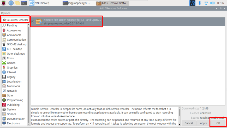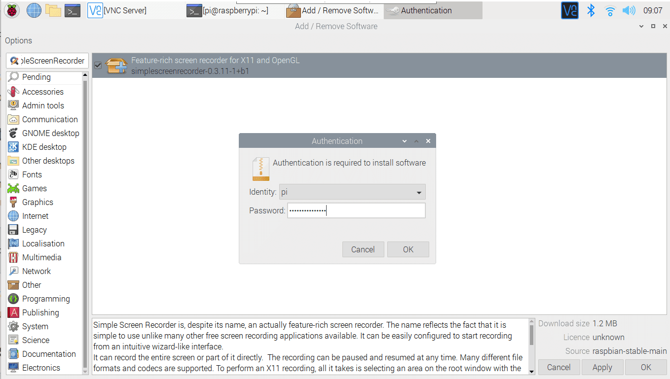 Các bước cài đặt phần mềm quay video màn hình trên Raspbian