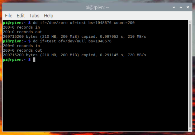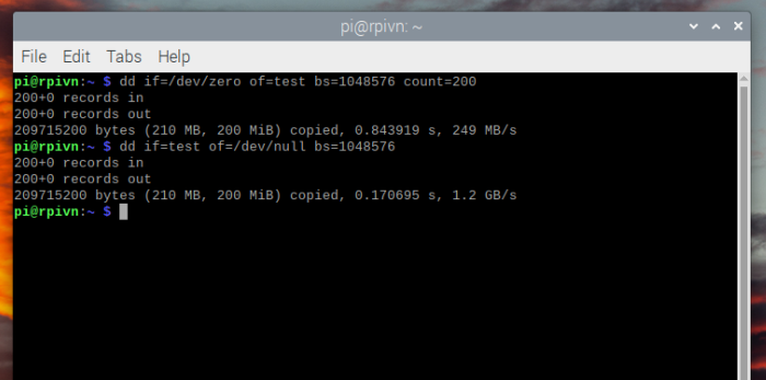 Một cách khác nữa, có sẵn trên các hệ điều hành Linux nói chung là bạn sử dụng lệnh dd để test tốc độ thẻ nhớ và ổ SSD trên Raspberry Pi