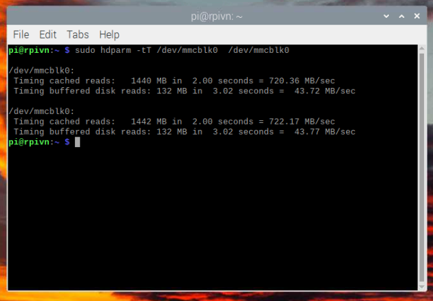 sudo hdparm -tT /dev/mmcblk0 /dev/mmcblk0
