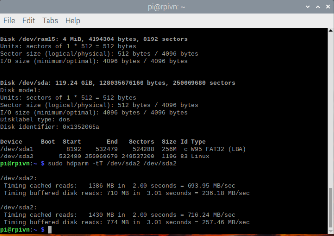 sudo hdparm -tT /dev/sda2 /dev/sda2
