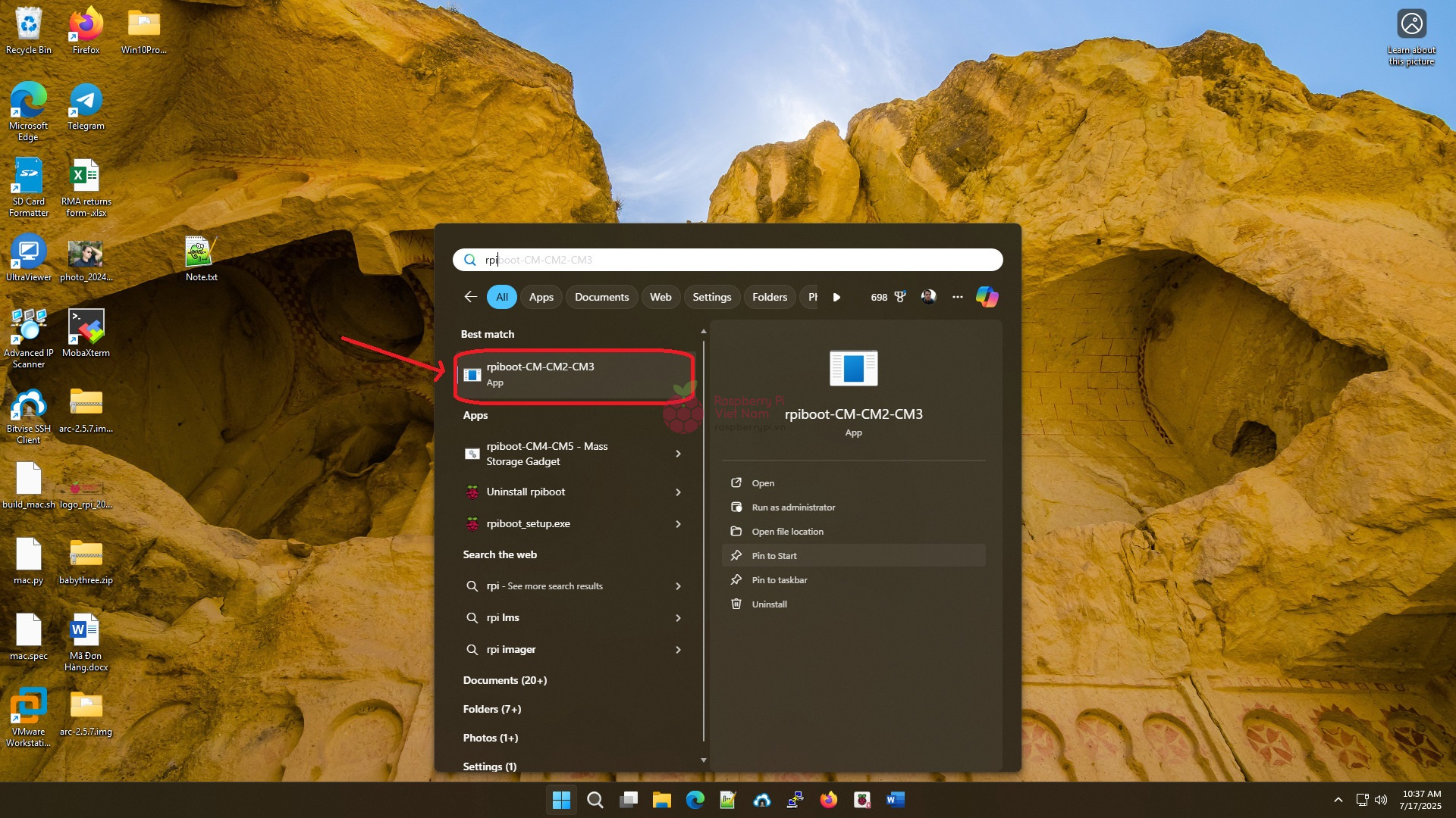 Mở menu Start trên Windows và tìm “rpiboot-CM-CM2-CM3”.