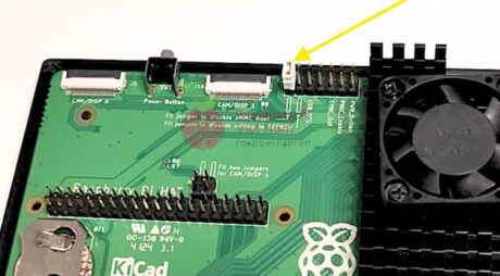 Đối với phiên bản CM5 có eMMC, quy trình sẽ phức tạp hơn một chút, vì bạn cần ghi hệ điều hành trực tiếp vào bộ nhớ trong của thiết bị. Trước khi tiến hành, hãy đảm bảo vô hiệu hóa khởi động từ eMMC bằng cách: Gắn một jumper (cầu nối) vào các chân quy định trên IO Board để tạm thời tắt chế độ boot từ eMMC. Việc này giúp Raspberry Pi CM5 chuyển sang chế độ USB boot để bạn có thể truy cập vào bộ nhớ eMMC từ máy tính.