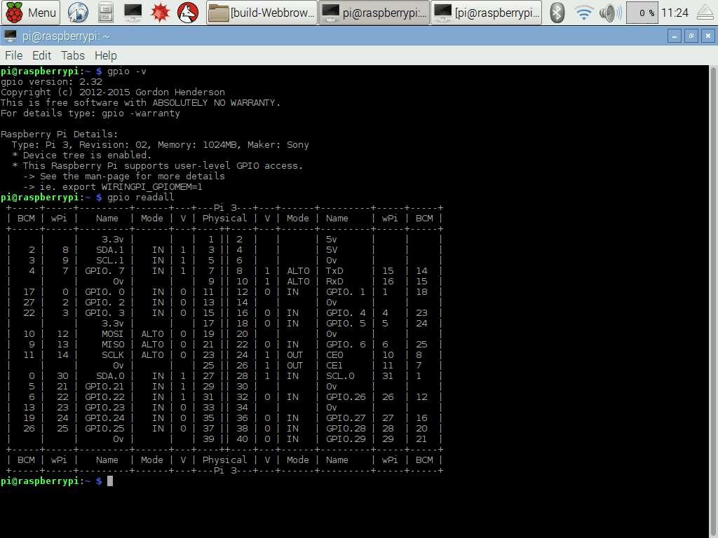 Sau khi tiến hành cài đặt theo các bước trên bộ thư viện wiringPi sẽ được cài đặt trên máy. Để kiểm tra xem quá trình cái đặt có thành công hay không ở cửa sổ Teminal gõ lệnh