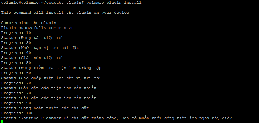 Tuy nhiên, đến đây bạn vẫn chưa thể nghe nhạc Youtube trên Volumio được. Bạn cần thực hiện update hệ thống core của Youtube được cài đặt kèm plugin ở trên. Để update, các bạn chạy lần lượt các lệnh dưới đây