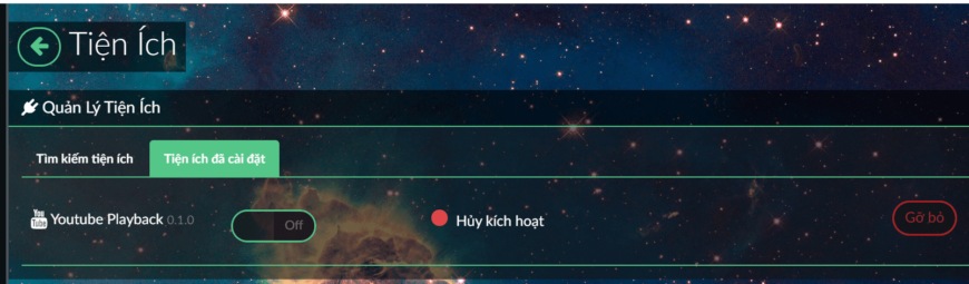 Bây giờ, khi bạn vào phần Tiện ích, bạn sẽ thấy tiện ích Youtube Playback đã được cài nhưng chưa kích hoạt.