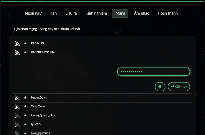 Bước 5 bạn sẽ thiết lập Wifi cho mạch Pi nếu muốn. Trường hợp bạn vẫn thích sử dụng dây mạng Ethernet thì bỏ qua bước này.