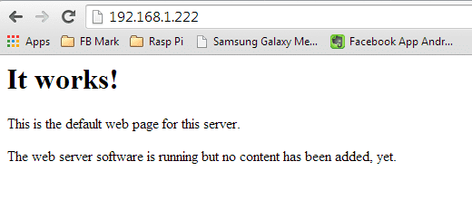 Mặc định, Apache sẽ chạy một file test HTML sau khi cài đặt xong. Bạn chỉ cần mở trình duyệt lên, gõ địa chỉ IP của Raspberry Pi hoặc gõ localhost (nếu bạn test bằng chính máy Raspberry Pi)
