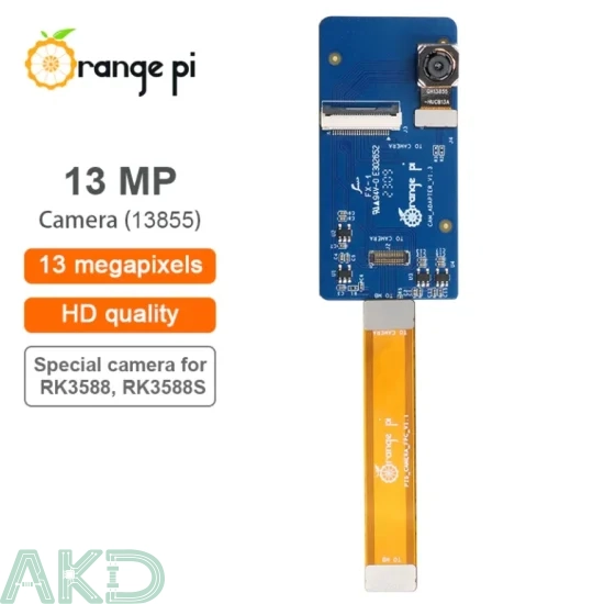 Camera OV13580 cho Orange Pi 5/5B/5 Plus kết nối qua 40 chân MIPI, tương thích với các chip RK3588 và RK3588S, sử dụng cho các bo mạch Orange Pi 5, 5B và Orange Pi 5 Plus. Camera có độ phân giải tối đa 13,2MP, góc nhìn 77,6° và tiêu cự từ 0,1m đến vô cực.