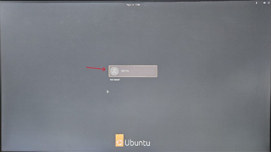 Tiếp theo, nhấn bất kỳ phím nào trên bàn phím hoặc nhấp chuột để màn hình khóa Ubuntu xuất hiện. Tại đây, nhấp vào User của bạn trước.