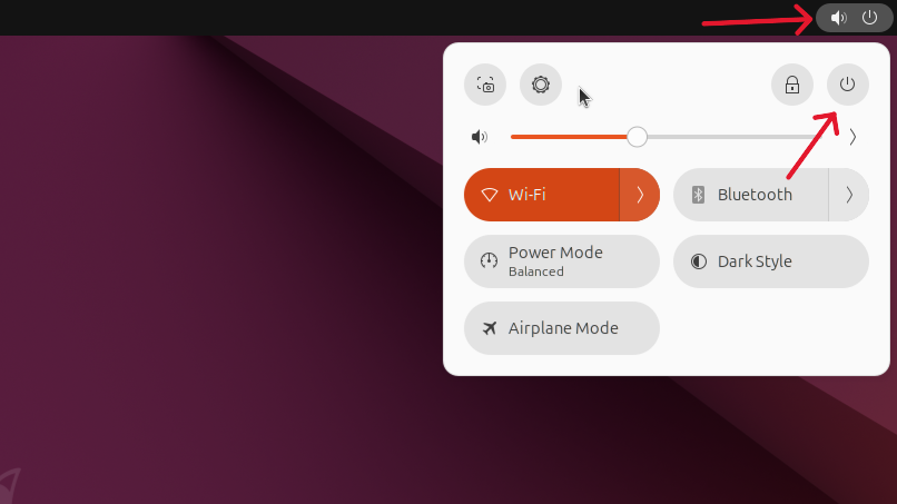 Bây giờ, nhấp vào góc trên bên phải (nút nguồn) trong khu vực khay hệ thống. Tại đây, nhấp vào Nút nguồn trong menu.