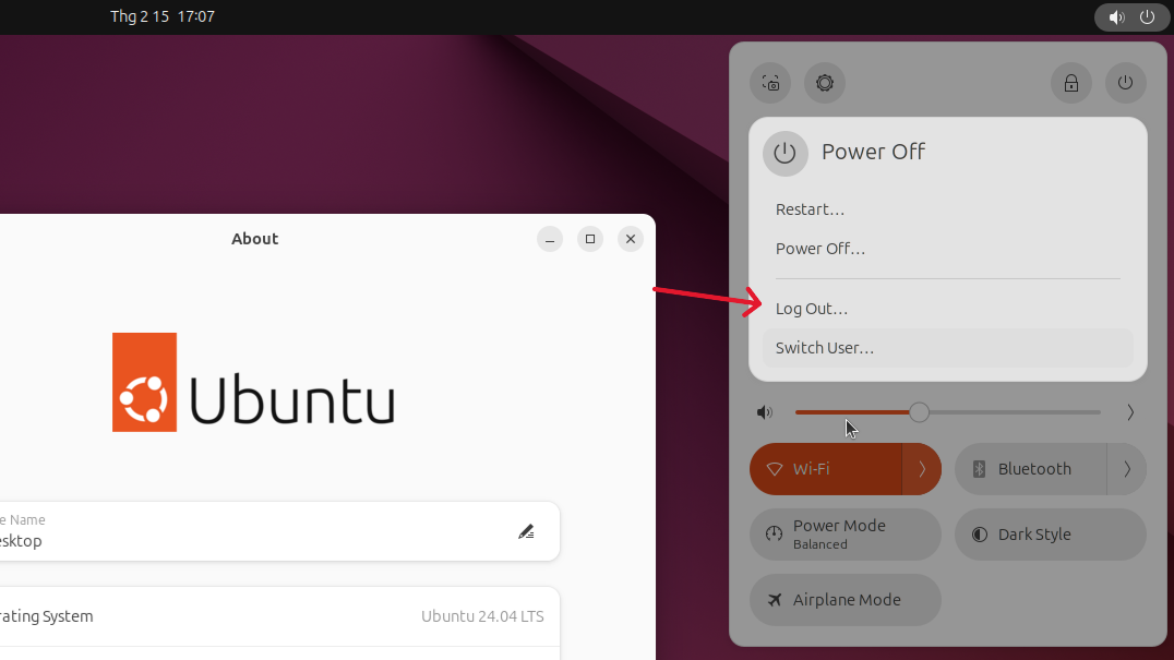Sau đó, chọn Log out. Thao tác này sẽ đưa bạn ra khỏi phiên đăng nhập Ubuntu hiện tại.