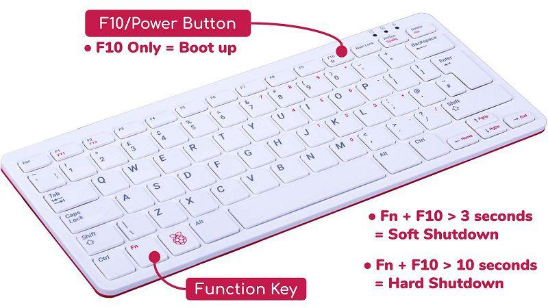 - 10 giây và thả ra. Raspberry Pi 400 sẽ cắt điện cho bộ xử lý và tắt máy. Đây là hành động cưỡng bức tắt nguồn và nó chỉ cần thiết nếu Hệ điều hành bị treo và tắt mềm không áp dụng được.