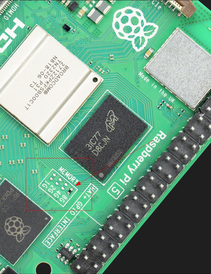 Ở phiên bản này, chúng ta cũng có các tùy chọn RAM bao gồm 1/2/4/8GB. Tuy nhiên, ở thời điểm ra mắt thì chỉ có phiên bản 4GB và 8GB. Các phiên bản thấp hơn dự kiến có mặt cuối năm 2024. Điều đặc biệt là bạn cũng có thể biết được dung lượng RAM dựa vào thông tin in trên bo mạch. Khác với RPi 4, bạn sẽ cần khởi động vào trong hệ điều hành mới kiểm tra được dung lượng RAM.