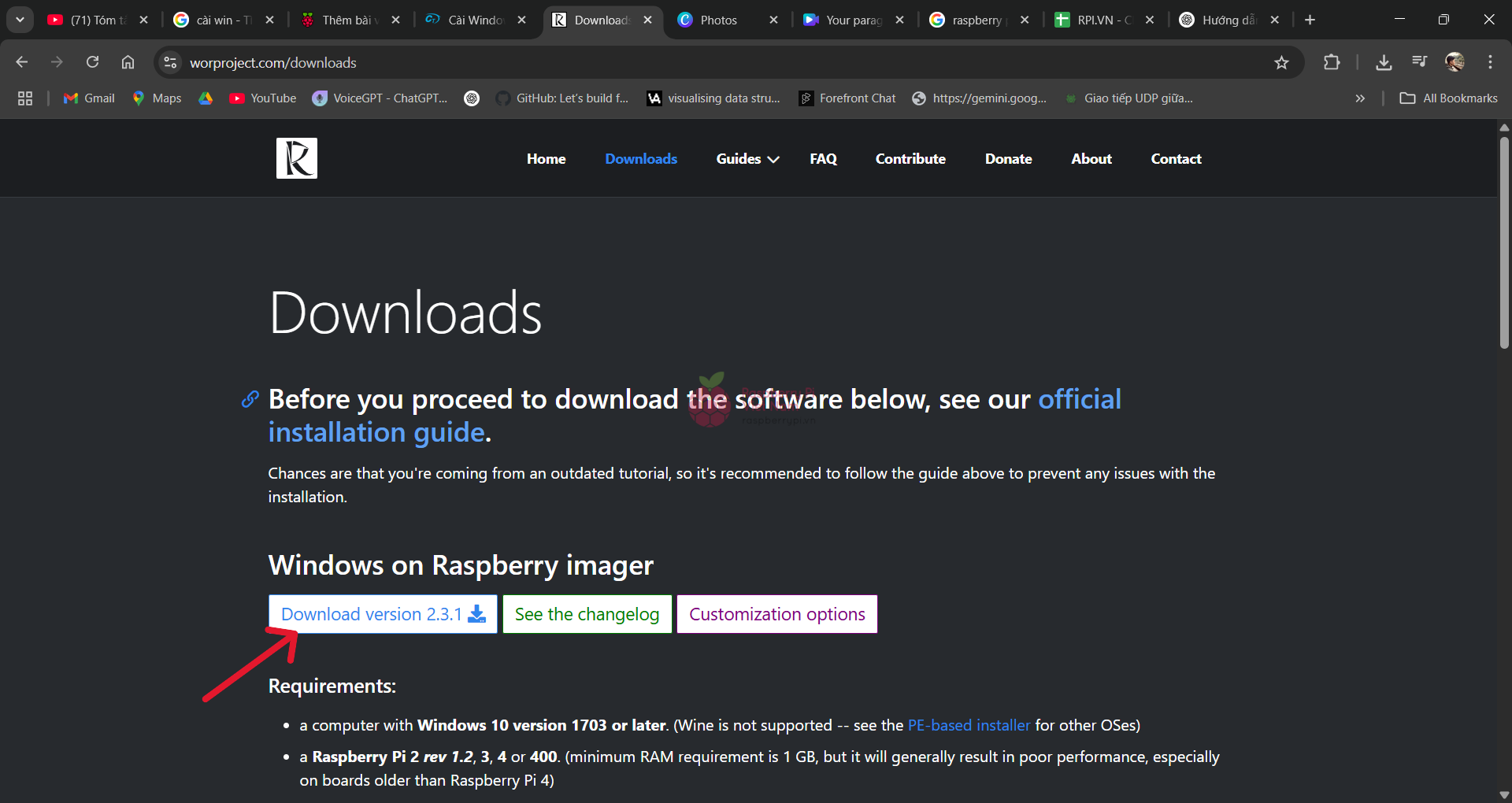 Chọn vào mục Download và tải về Windows on Raspberry imager.