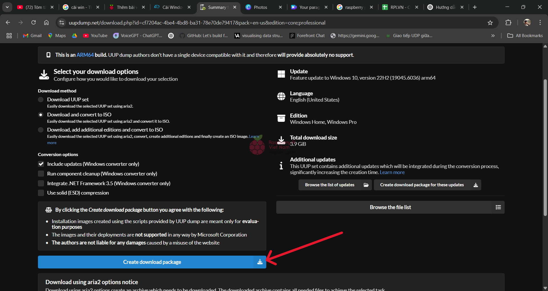 Để tải về phiên bản Windows 10, bạn kéo xuống và lựa chọn phiên bản mình muốn. Lưu ý, để có thể chạy được Raspberry Pi 4, bạn cần sử dụng Windows cấu trúc arm64.