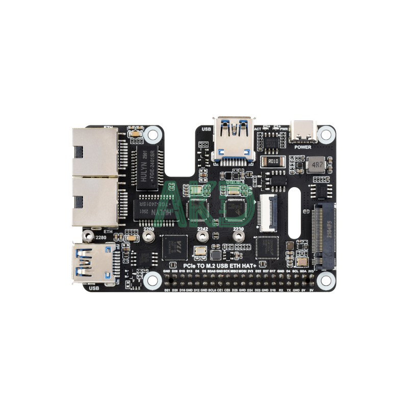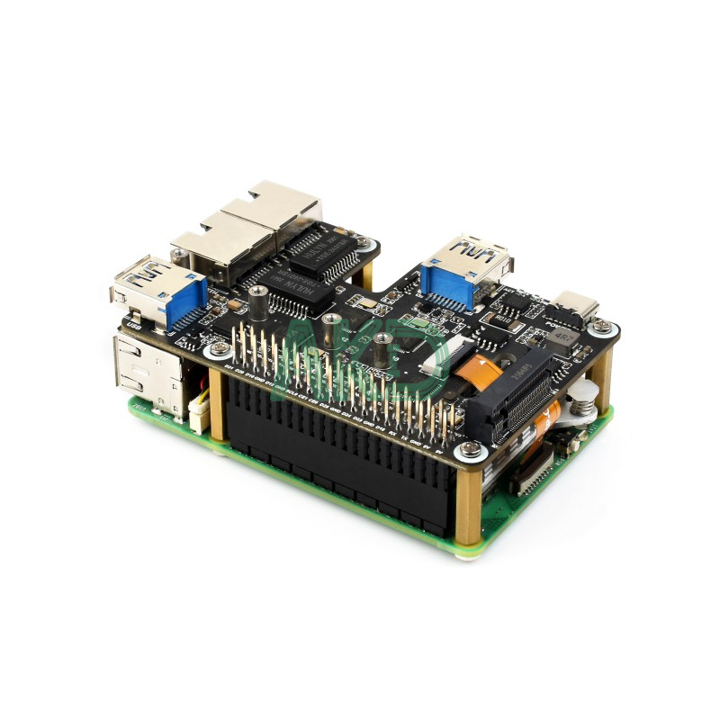 Mạch chuyển đổi PCIe sang USB 3.2 Gen1 / 2.5G ETH / M.2 NVMe cho Raspberry Pi 5, hỗ trợ ổ SSD M.2 NVMe, 2 cổng USB 3.2 và 2 cổng Ethernet, đọc/ghi tốc độ cao, HAT + Tiêu chuẩn, không cần cài đặt driver