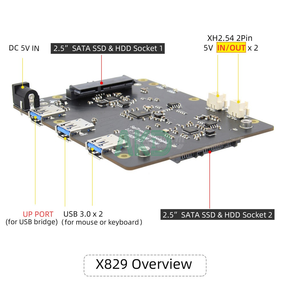 Tính năng mạch mạch mở rộng 2 ổ SSD HDD 2.5 SATA Raspberry Pi 4 X829