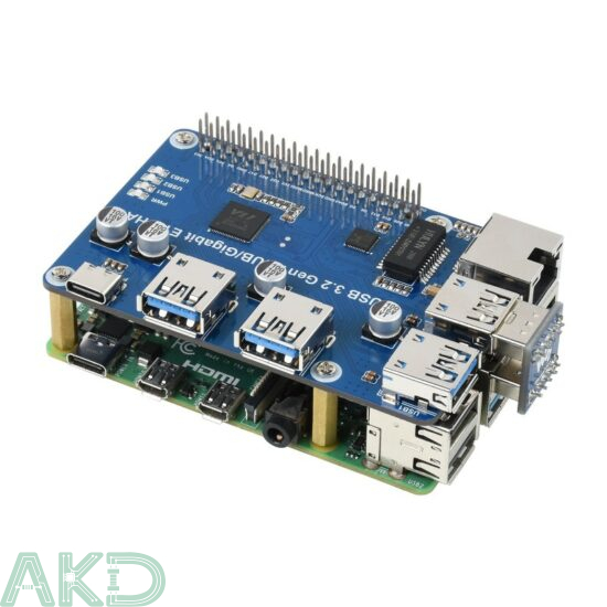 Mạch PCIe sang USB 3.2 và Ethernet 2.5Gbps Raspberry Pi 5, hỗ trợ ổ SSD M.2 NVMe, 2 cổng USB 3.2 và 2 cổng Ethernet, đọc/ghi tốc độ cao, HAT + Tiêu chuẩn, không cần cài đặt driver