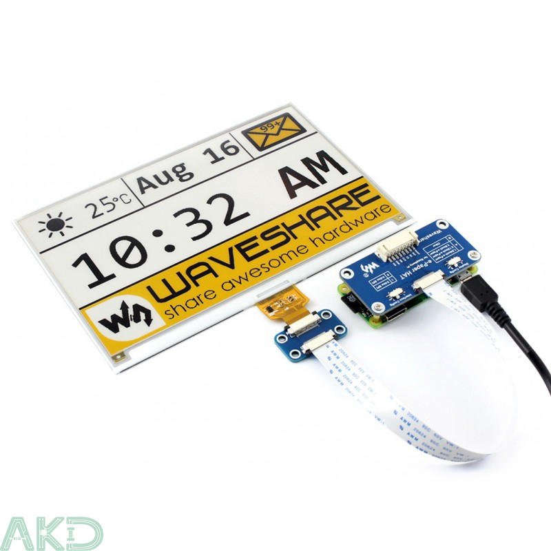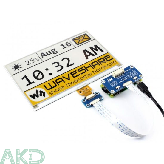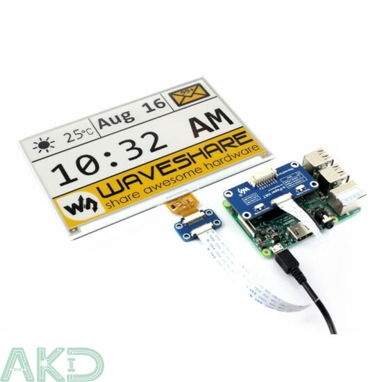 Đây là màn hình E-Ink HAT dành cho Raspberry Pi, kích thước 7,5 inch, độ phân giải 640 × 384, tích hợp bộ điều khiển nhúng và giao tiếp qua SPI, hỗ trợ hiển thị ba màu vàng, đen và trắng.