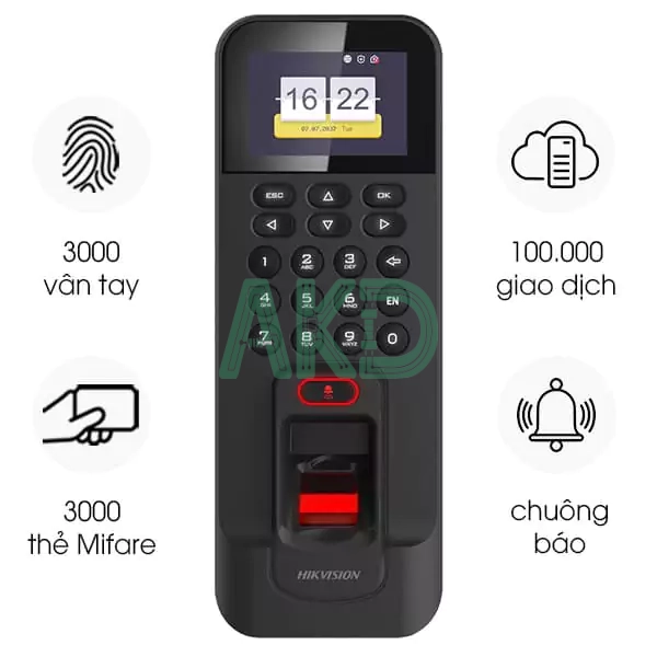 – Hỗ trợ chức năng Kiểm soát Ra vào và Chấm công bằng vân tay.