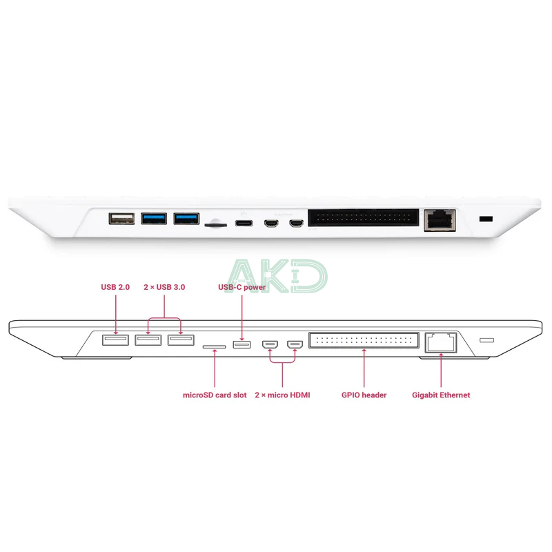 Với hai cổng micro HDMI hỗ trợ 4Kp60, Raspberry Pi 500 cho phép kết nối song song hai màn hình độ phân giải cao, mở rộng không gian làm việc hoặc trình bày đa màn. Điều này đặc biệt hữu ích trong môi trường văn phòng, lập trình, hoặc giảng dạy kỹ thuật.