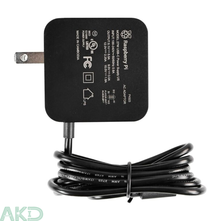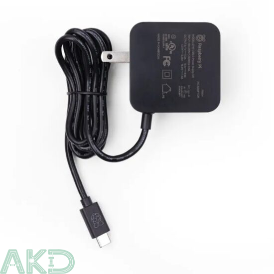 Khi Raspberry Pi 5 được giới thiệu, nhà sản xuất khuyến nghị sử dụng bộ nguồn chính hãng nguồn USB-C PD 27W Raspberry Pi 5 với cổng USB-C, hỗ trợ chuẩn Power Delivery và công suất tối đa lên đến 27W.