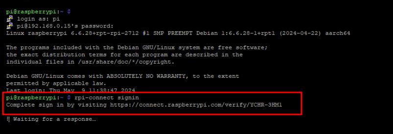 Lệnh này sẽ đưa ra một đường link dạng https://connect.raspberrypi.com/verify/XXXX-XXXX như dưới đây