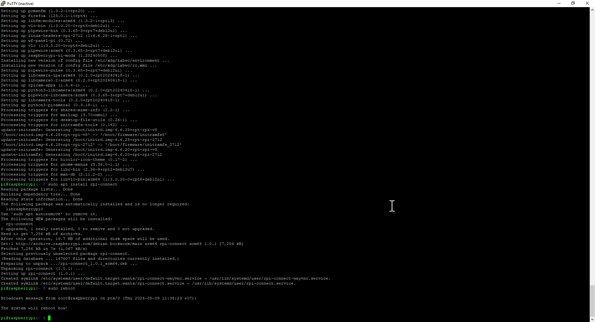 sudo apt update sudo apt upgrade -y sudo apt install rpi-connect -y