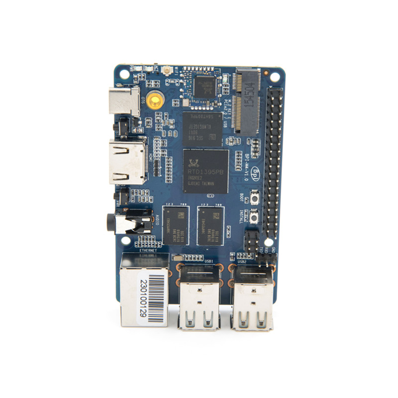 Banana Pi BPI-M4 là máy tính mini (Single Board Computer) 64-bit lõi tứ A53 sử dụng chip Realtek RTD1395. Nó có RAM 1GB/2GB và eMMC 8 GB. Nó cũng có WiFi tích hợp cho b/g/n/ac và Bluetooth 4.2. Về cổng kết nối, Banana Pi BPI-M4 có 4 cổng USB 2.0, 1 cổng USB TYPE C, 1 cổng HDMI, 1 giắc cắm âm thanh, hỗ trợ giao diện M.2 Key E PCIE 2.0.