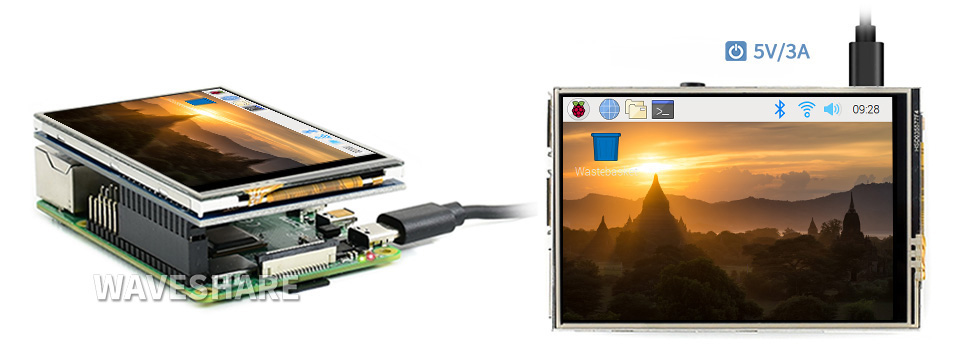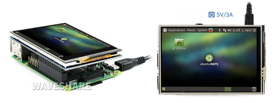 Màn hình cảm ứng điện trở 3,5 inch (C) cho Raspberry Pi, 480 × 320, giao tiếp SPI tốc độ cao 125MHz