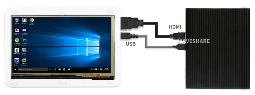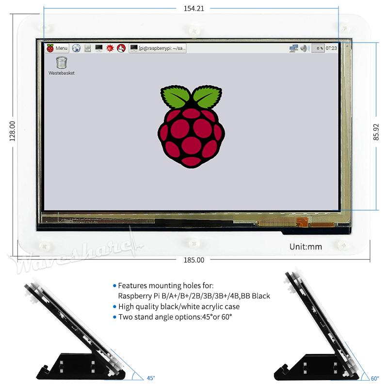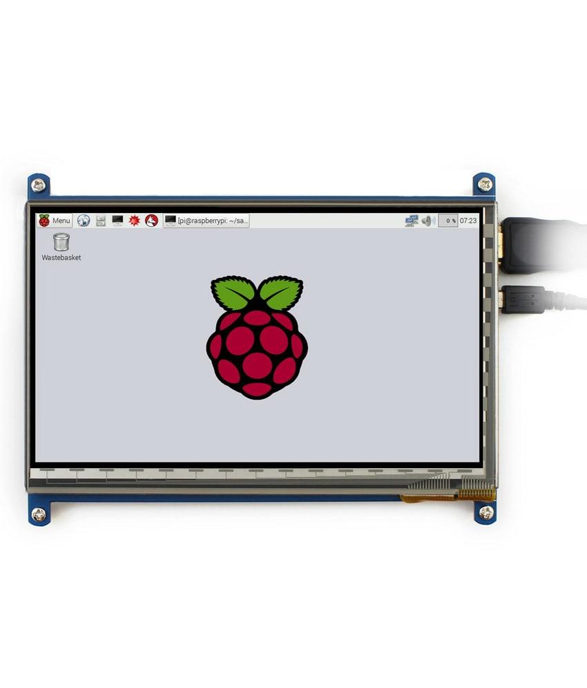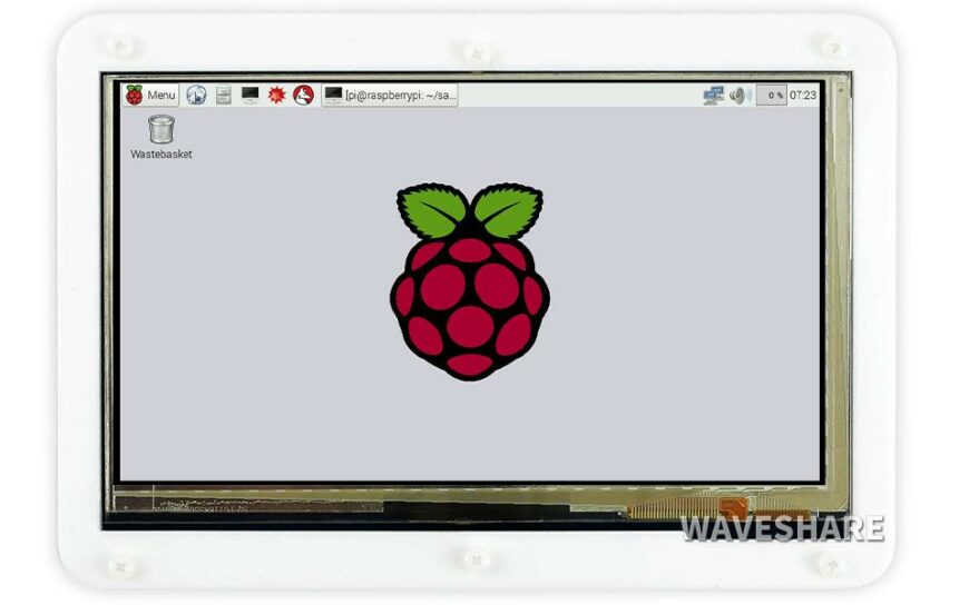 Màn hình cảm ứng 7″ (C) của WaveShare với bộ vỏ mica,, độ phân giải 1024 × 600, kết nối HDMI, tấm nền IPS siêu sáng, tiêu thụ điện năng thấp.
