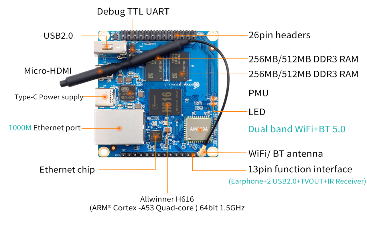 CPU | Allwinner H616 64-bit high-performance Quad-core Cortex-A53 processor |