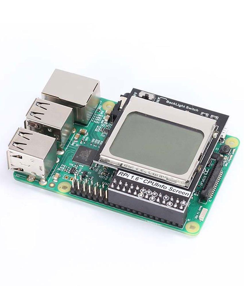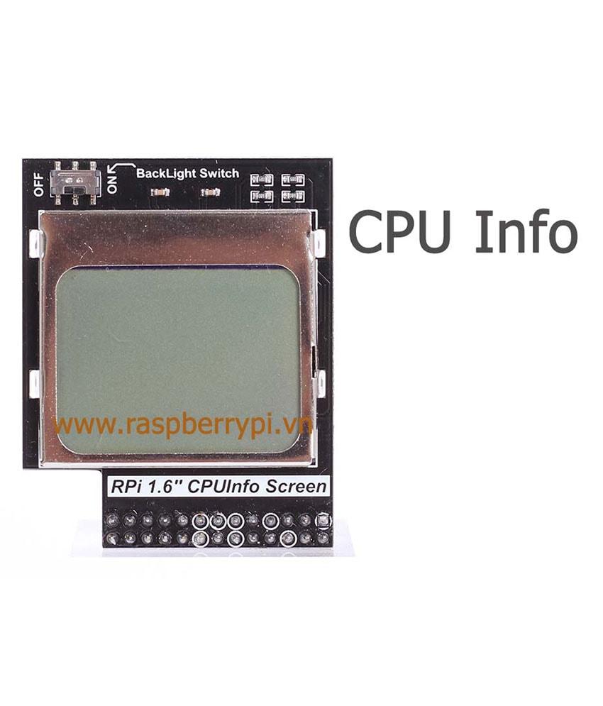 Sản phẩm Raspberry Pi CPUInfo Screen với màn hình 1.6″ độ phân giải 84 * 48 Pixel cho phép hiển thị các thông tin cơ bản như lượng tiêu thụ CPU, RAM, nhiệt độ hoặc địa chỉ IP của Raspberry Pi.