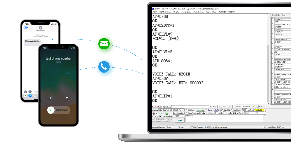 Thực hiện cuộc gọi điện thoại hoặc gửi SMS bằng lệnh AT, với jack cắm âm thanh tích hợp