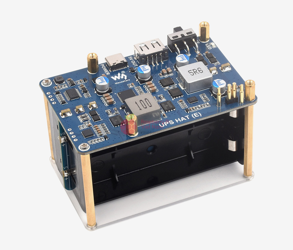 UPS HAT (E) Raspberry Pi - Đầu ra 5V 6A - Kết nối Pogo, sạc nhanh 2 chiều