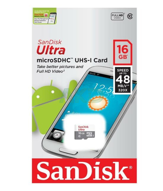 Cập nhật: Từ 05/2017, chúng tôi nâng cấp thẻ nhớ MicroSD Sandisk Ultra 16GB từ phiên bản tốc độ 48MB/s lên 80MB/s nhưng giá không thay đổi.