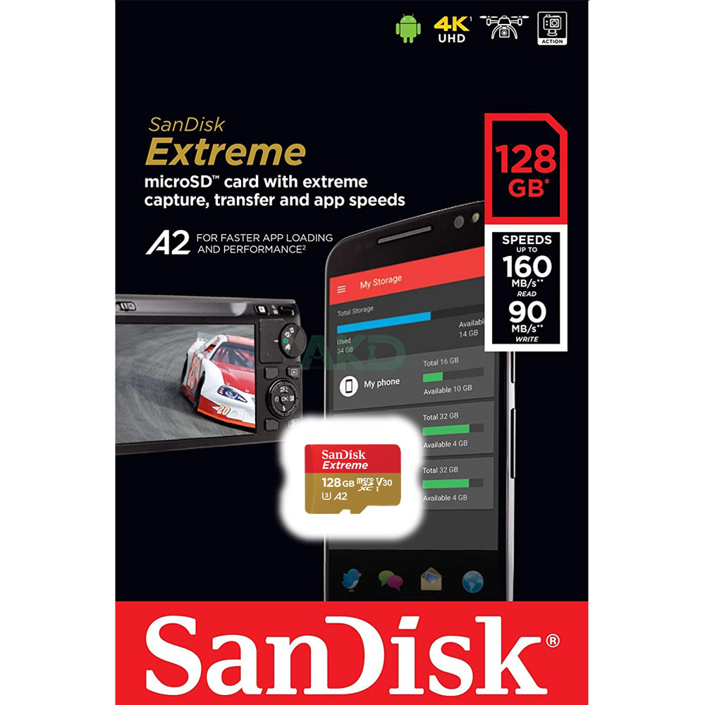 Thẻ Nhớ MicroSDXC SanDisk Extreme V30 A2 128GB sở hữu tốc độ truyền dữ liệu vượt trội, hỗ trợ ghi lên đến 170MB/s, đáp ứng hiệu quả nhu cầu chụp ảnh và quay video Full HD, 4K. Sản phẩm được thiết kế dành cho điện thoại thông minh Android, máy ảnh MIL cũng như các dòng camera hành động như GoPro Hero3, Hero3+, Hero4 và Hero+. Đồng thời, đây cũng là lựa chọn rất phù hợp để sử dụng với Raspberry Pi.
