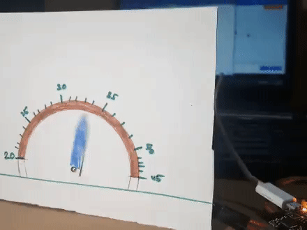 - Servo quay kim chỉ đến mức nhiệt độ tương ứng trên thước đo thủ công (in trên bìa cứng)