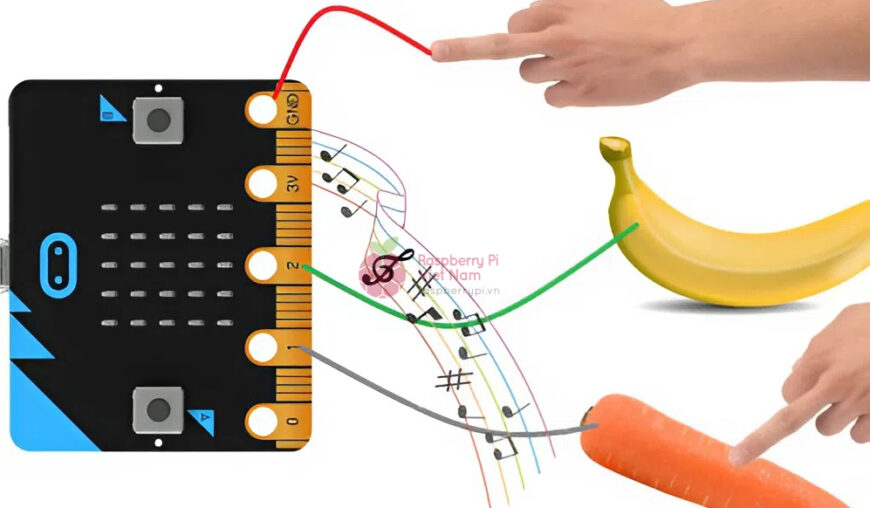 Với dự án thú vị này, bạn sẽ biến các loại trái cây như chuối, cam thành những phím nhạc cảm ứng! Khi bạn chạm vào trái cây, Micro:bit sẽ phát hiện tín hiệu và gửi lệnh để máy tính phát ra âm thanh, giống như đang chơi một nhạc cụ.