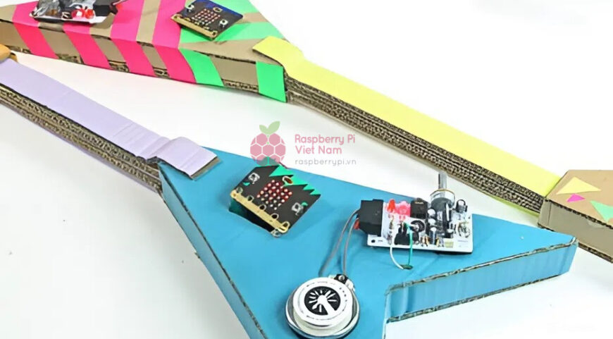 Bạn đã sẵn sàng trở thành ngôi sao nhạc rock chưa? Trong dự án này, bạn sẽ chế tạo một cây guitar không khí cực “ngầu” bằng Micro:bit! Bằng cách sử dụng cảm biến ánh sáng tích hợp, Micro:bit sẽ phát ra âm thanh với cao độ khác nhau tùy theo lượng ánh sáng nhận được – như thể bạn đang điều khiển dây đàn bằng tay!