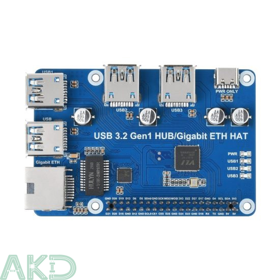 HAT mở rộng 3 cổng USB 3.2 Gen 1 và 1 cổng Ethernet Gigabit tương thích nhiều thiết bị khác như máy tính chạy Windows, Mac, Linux và đặc biệt cả Android mà không cần cài driver. Bạn chỉ cần cắm là sử dụng được luôn.