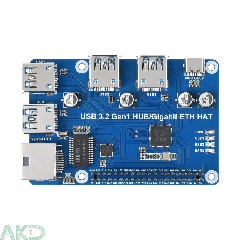 Sản phẩm được thiết kế theo chuẩn HAT (Hardware Attached on Top), sử dụng 40 chân GPIO chuẩn trên Raspberry Pi, giúp mở rộng chức năng một cách trực quan và linh hoạt. Điểm mạnh của USB 3.2 Gen1 + Gigabit Ethernet HAT Raspberry Pi là sự kết hợp giữa hub USB tốc độ cao và cổng mạng Ethernet nhanh, phục vụ đa dạng ứng dụng từ giải trí tới dự án IoT và mạng di động.