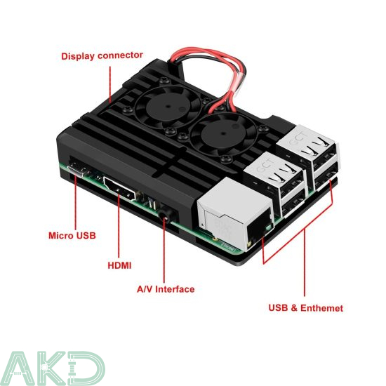 Vỏ nhôm 2 quạt Raspberry Pi 3B/3B+ là một trong những giải pháp tản nhiệt hiệu quả nhất cho bo mạch RPi 3. Thiết kế nhôm kết hợp với hai điểm tiếp xúc trực tiếp với CPU thông qua miếng dán tản nhiệt Silicon và hai quạt công suất lớn giúp bo mạch hoạt động ổn định và bền bỉ hơn.