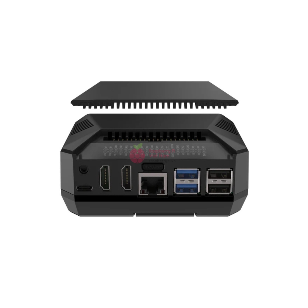 Toàn bộ mặt trên hoạt động như một bộ làm mát thụ động cho Raspberry Pi, kết hợp với quạt làm mát đi kèm và nhiều lỗ thông hơi, mang lại hiệu quả làm mát tuyệt vời