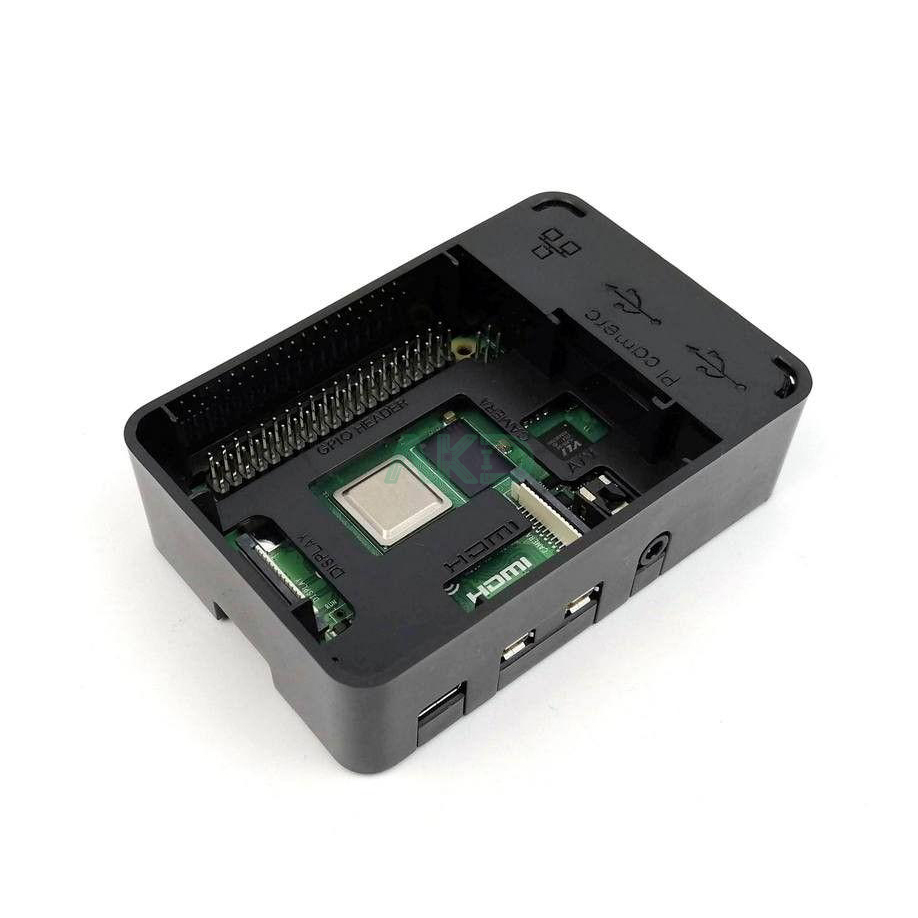 vỏ nhựa ABS Raspberry Pi 4 kèm quạt là phụ kiện vỏ case bảo vệ dành cho bo mạch Raspberry Pi 4 Model B, được thiết kế từ chất liệu nhựa ABS cao cấp màu đen với cấu trúc ba mảnh dễ dàng lắp ráp mà không cần sử dụng ốc vít.